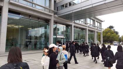 屋外でお弁当を食べた後、平和記念資料館の見学です。