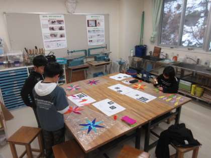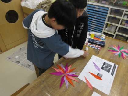 図画工作科の時間に「光を通す材料」の感じを生かして、表わすことを楽しみました。紙の色や折り方、重ね方を工夫して美しい作品に仕上げることができました。