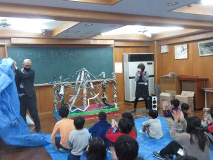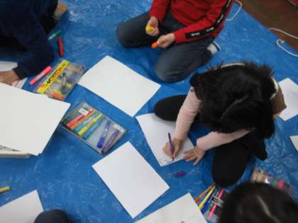 小さな巨匠展に出品する合同作品を作りに明徳小学校へ行ってきました。