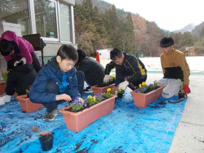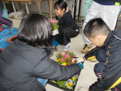 3月5日(火)に、生活委員会でプランターに花を植えました。