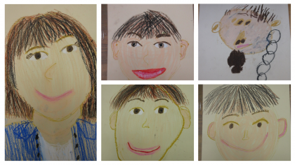 自分の顔をパスを使って表現しました。顔の輪郭や、目の形、口の大きさ、髪型などそれぞれこだわって作品を完成させることができました。
