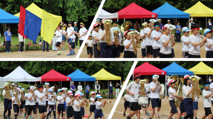 天気も良く、色リーダーを先頭に、金管バンドの演奏と行進で入場し開会式を行いました。児童生徒代表、学校長、PTA会長、審判長のお話をしっかり聞いた後、準備体操をしました。