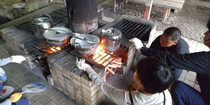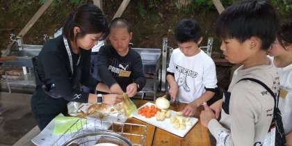 みんなで役割分担をして、食材を切ったり、火をつけたりと協力してのカレー作りです。