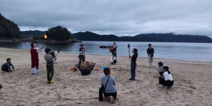 浜辺でのキャンプファイヤーが始まりました!