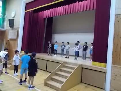 一期では、文化祭にむけて練習をしています。各学年の授業で学んだことを生かしながら一つの劇にしています。日常の学習を文化祭でみてもらえるように子どもたちは頑張っています。
