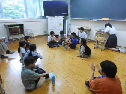 文化祭後、それぞれのチームで集まって、たてわり反省をしました。本番の舞台映像を見たり、それまでの活動を振り返ったりして、自分たちの成長を話し合いました。大きな行事をやり切って、みんなの顔にも達成感があふれていました。中心となってメンバーをまとめたリーダーさん、お疲れ様でした。