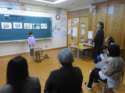 学習のまとめの音読発表会をしました。学習して考えたたぬきの気持ちやおかみさんの気持ちを、動作やせりふにして音読の中に入れ、上手に発表できました。「大きな声で、しっかり音読できました。」「せりふも考えて入れてあって、様子がよく分かりました。」など見ていただいたお客さんに言ってもらえて、うれしい1年生でした。