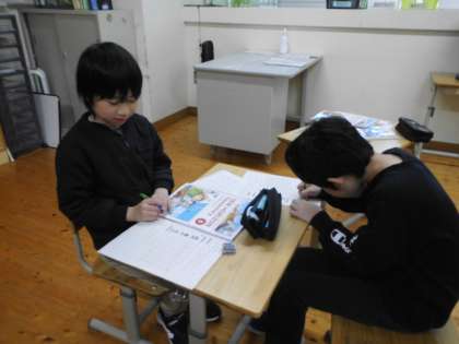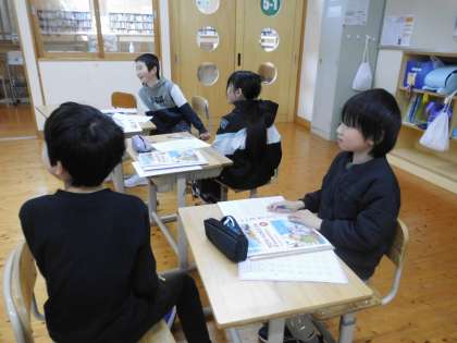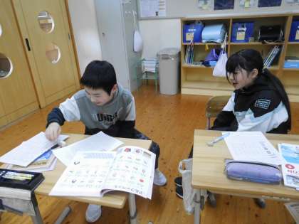 単元の最終で、新しい先生とお互いのことをよく知るために、クラスの仲間と名前のスペルを聞き合ったり、好きなものを伝え合ったりするやり取りをペアで練習しました。