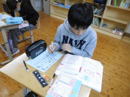 そして、4年生と5年生のために、「漢字は意味で覚えよう!ポスター」を作って紹介しました。みんな、部首の意味や例を示したりしてを分かりやすくまとめていました。