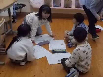 一期では校外学習の事前学習をしました。天狗杉に行くために縦割りグループに分かれてチーム名やめあて、役割を決めました。4年生が中心になって進行している姿が頼もしかったです。