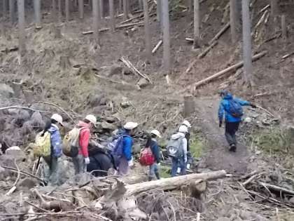 一期では校外学習で天狗杉へ行ってきました。雨が心配されましたが、無事に天狗杉にたどり着くことができました。4年生のリーダーが「大丈夫?」とチームの仲間に声掛けしている姿がたくさん見られました。