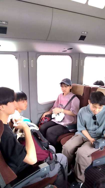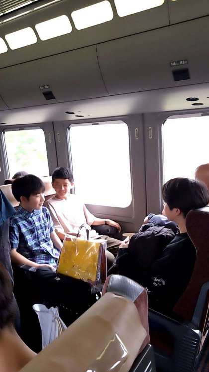 博多への特急の中で、仲良く過ごしています。