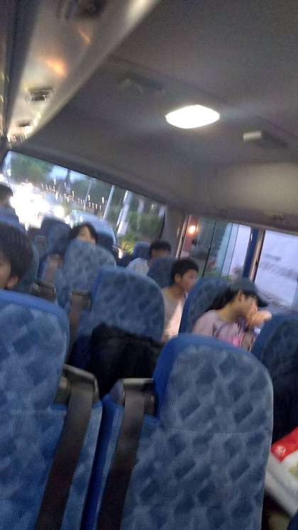 先程まで話が弾んでいましたが、疲れて寝始めました。毎日乗っているスクールバスに乗り込んで安心したのでしょうか。
