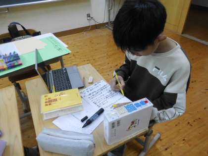 分からない漢字は辞書で調べたりしながら、丁寧な字で書いていました。