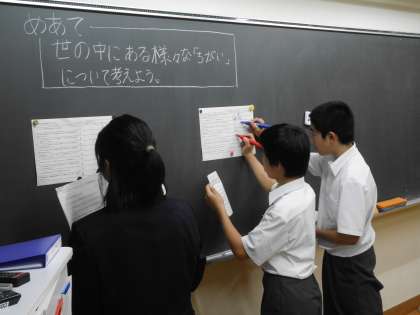 6月11日(水)3・4時間目は、身近にある様々な「ちがい」について、「あってもいいちがい」「あってはいけないちがい」に分け、それぞれ“なぜなのか”を意見交換・交流しました。その上で、2つの「ちがい」の特徴を考え、これから生活していく中で自分ができることについてまとめました。