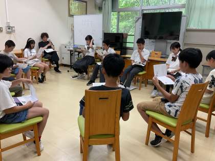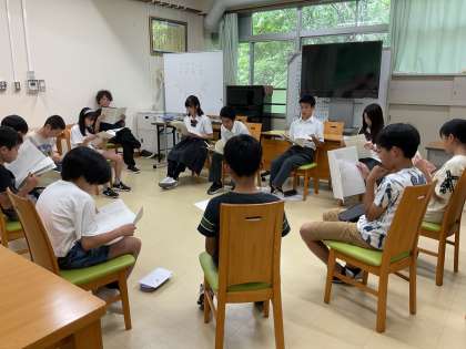 一回目の二期の劇の取り組みがありました。今日は、7年生が昨年度から話し合って題材を決め、作成を手がけた「ちいちゃんのかげおくり」の脚本を読み合いました。劇の取り組みを通して、二期の目標に近づけたら良いですね。これからが楽しみです。
