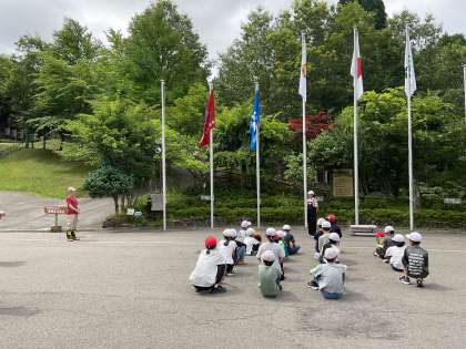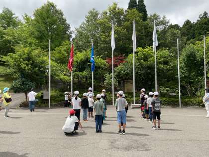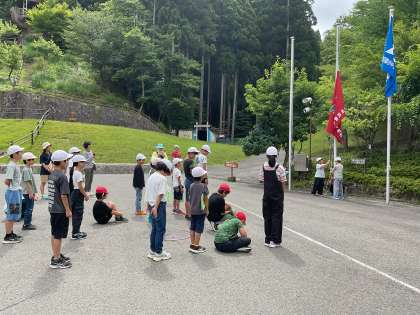 宕陰・花背の各校代表の人が 校旗をあげてくれて、