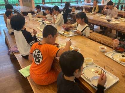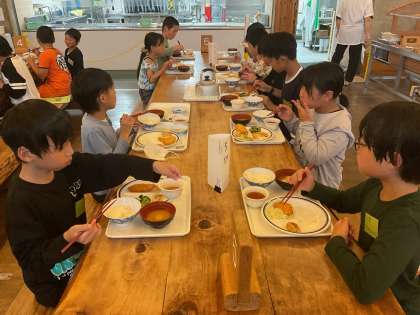 自動のご飯のお代わり機に、びっくりしながら、たくさんの子がおかわりに行きました。