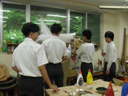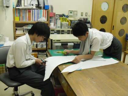 3期の大道具は、1学期から準備をしてきました。「ふりそでの少女像」の完成を目指して作業をしました。