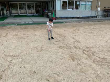 1・2年生では、生活科で「水遊び」をしました。マヨネーズの容器に水を入れて、飛ばしたり、地面に絵を描いたりしました。強く押すと高く飛び出る水に驚いていました。夏だからこそできる遊びを体験することができました。