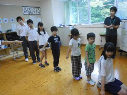 4回目の縦割り活動で、体育館を使って立ち位置を確認したり動きを確認したりするチームが出てきました。何も見ないでダンスを踊れるようになりチーム内で見せ合いをしているチームもありました。どのチームも上級生が下級生にていねいに教えながら練習している姿がありました。
