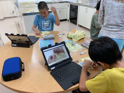現在、学習している家庭科の単元目標である「針と糸を使って、世界に一つしかないオリジナル小物を作ろう!」に向かって、基本の縫い方を練習しています。「早く縫えるようになって小物作ってみたい!」という声がたくさんあがり、休み時間も練習していました。練習を重ねるごとに、みんなメキメキ上達しています。