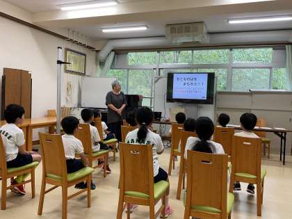一期では、保健指導がありました。大人の歯である「6才臼歯」について学習しました。歯ブラシの向きを斜めにして届きにくいところを磨くことを学びました。