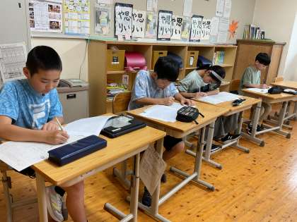 今日は、5、6年生合同で、読書感想文の学習をしました。自分で選んだ本を読んで気付いたことや、自分と向き合って考えたことをまとめ、清書に取り組んでいます。みんな、一字一字丁寧な字で清書をしていました。