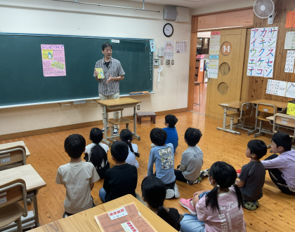 一期では、本の紹介がありました。紹介してもらった本の題名は「みしのたくかにと」。一見、どのような内容なのかわかりませんが、先生の紹介を聞いている中で「あ!題名の意味がわかってきました!」という人が出てきました。(逆さ読みをすると。。。)紹介を聞いて本の内容に興味を持った人もいました。また、借りて読んでみてください。