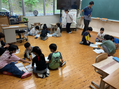 一期では、京都市動物園の校外学習に向けて事前学習を行いました。先生のお話を聞いて、めあてや注意点、予定、持ち物などを確認しました。その後、縦割りのチームに分かれて、チームの目標や役割決めをしました。