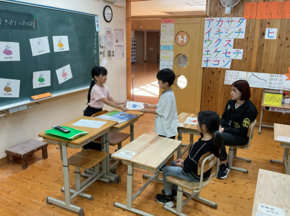 1・2年生では、合同で英語活動の学習をしました。絵本に出てきた色を探したり、ミッシングゲームをしたりして学習しました。ゲームを通して"○○,please.""Here you are.""Thank you.""You're welcome."のやり取りをしました。