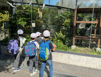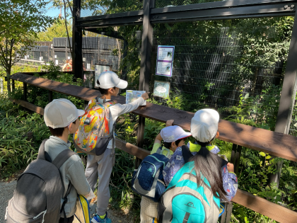 一期では、校外学習で京都市動物園に行きました。縦割りチームで謎解きにチャレンジしながら動物を観察しました。4年生がリーダーになって、みんなで協力している姿が素敵でした。