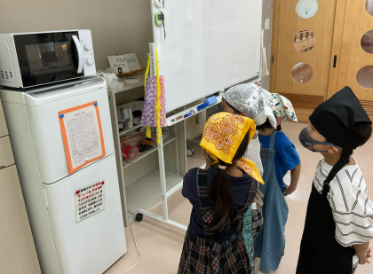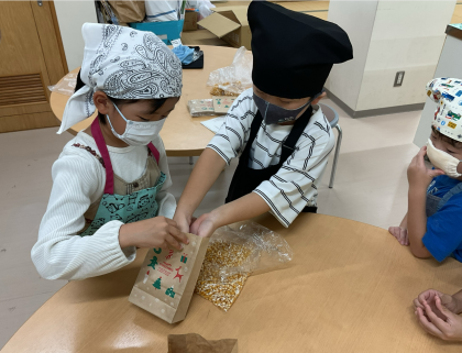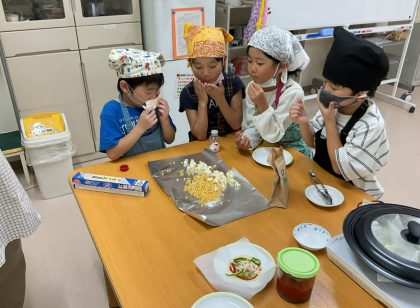 1・2年生では、生活科で育てたとうもろこし(イエローポップ)をポップコーンにしました。電子レンジに入れて、「ポンポン」とはじける音にわくわく心を弾ませながら待っていました。自分たちで育てたとうもろこしを食べることができてうれしそうでした。