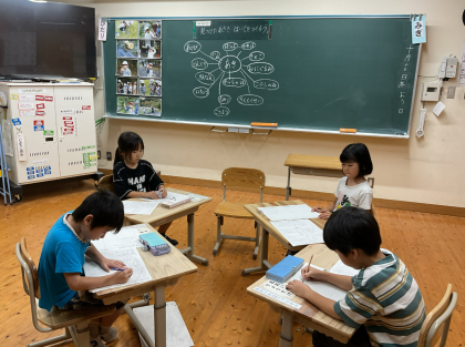 1・2年生では、ことば学習で俳句づくりをしました。昨日の秋見つけで見たものを季語にしました。みんなでアドバイスを出し合って、よりよい俳句をつくりました。