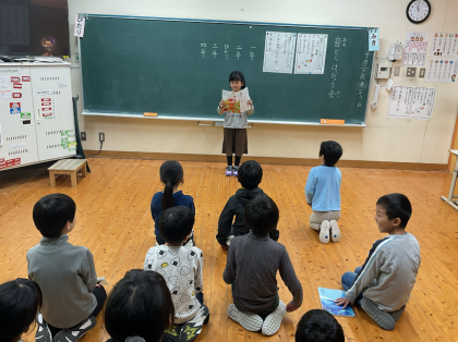 一期・ひかり学級では、音読発表会をしました。1年生は、初めての音読発表会で役割に分かれて大きな声で音読することができました。2年生、ひかり学級は一人で長い文章を音読しました。口の開け方や読む速さが意識できていて、日頃から音読をして学んでいることが伝わってきました。
