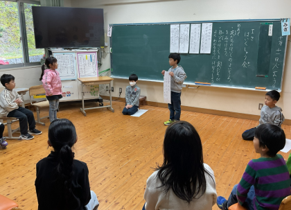 俳句を発表した後、その俳句のよいところを伝え合いました。「自分が思いつかなかった言葉があってすてきだなと思いました。」など、言葉に注目して伝え合っていました。