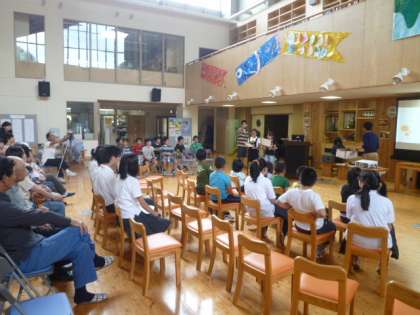 お世話になった地域の方々と保護者,5年生以上の児童・生徒の前で,学習旅行と修学旅行の報告会を行いました。「戦争は絶対してはいけないことが分かりました。」,「外国の文化に触れることができ,貴重な体験となりました。」,「たくさんの方のおかげで旅行に行くことができて,感謝しています。」・・・,体験を通して学んだ発表は分かりやすく,心に響きました。