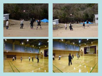運動場で鬼ごっこをしたり,サッカーをしたり,ソフトバレーボールで遊んだり,体育館でバスケットボールをしたりして楽しく過ごしていました。