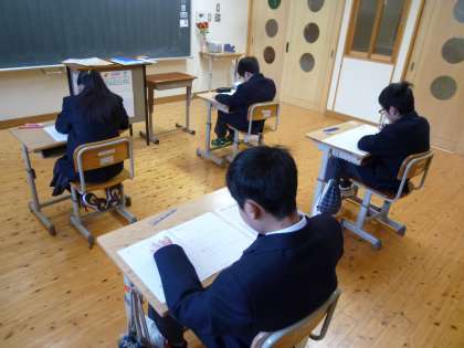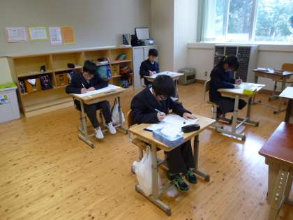 昨日は,国語のジョイントプログラムを行いました。中学校過程に進級して,小学校課程でどれくらい力がついてきているのかをみて,これからの学習に生かすためのテストです。4人の生徒はとても真剣に取り組んでいました。