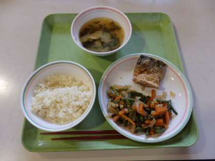 4月24日(木)今日の給食は,麦ごはん・さばのたつたあげ・野菜のきんぴら・みそ汁です。7〜9年生には,プリンもつきました。