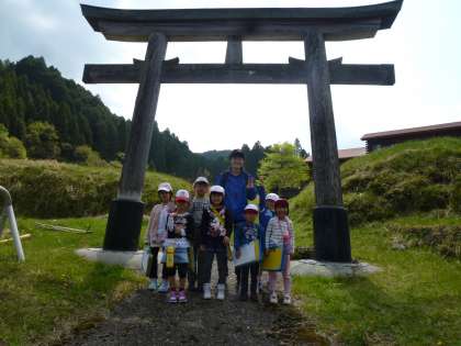 5月9日(金)10時より,1・2年生が生活科の学習で,別所方面にでかけました。スクールバスに乗り,最初に別所神社へ行きました。