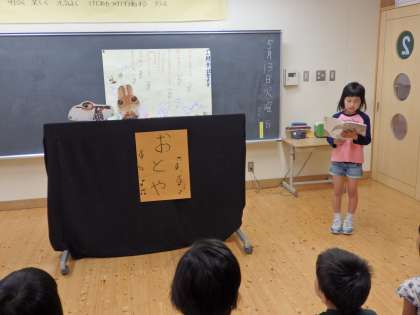ぺープサートを使って,みんなに分かりやすいように音読することができました。終わりに,みんなから3年生が発表してくれたような『おとや』に行ってみたいという声が聞かれました。3年生は,とってもうれしそうでした。