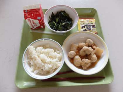 5月19日(月)今日の給食は,麦ごはん・牛乳・鶏肉と里いもの煮つけ・ほうれん草のじゃこのいためもの・黒大豆です。