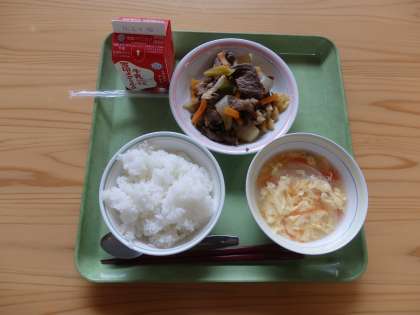 焼肉は,久しぶりで人気があり,おかわりのほしい子がたくさんいました。肉もやわらかく,とてもおいしかったです。トマトと卵のスープは,トマトの味がしっかりついていておいしかったです。ごはんもすすみました。