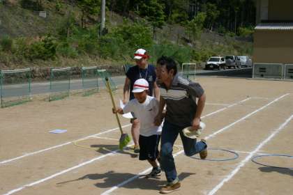 『バケツをもってくる』『○○先生と手をつないでゴールする』『友達のお父さんかお母さんと手をつないでゴールする』『保護者席から水筒を2つ借りてくる』『○○先生とバスケットボールをパスしながらゴールする』など・・・