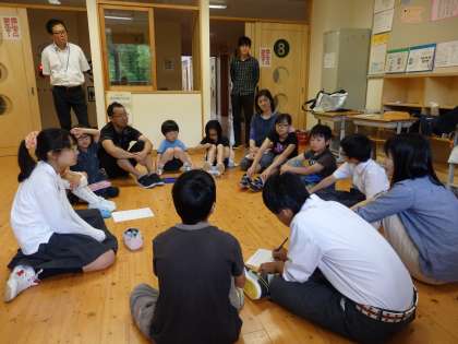 6月3日(火)1時間目に,赤組・青組・黄組に分かれて縦割り活動の振り返りをしました。