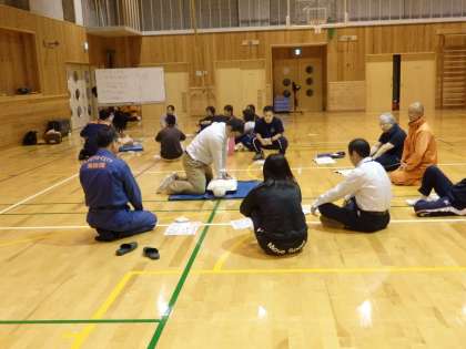 6月5日(木)15時30分より,普通救命研修会を行いました。左京消防署花背消防吏員駐在所の方と消防分団の方に来ていただき,実習を交えた研修を行いました。これから始まる水泳学習にも備えて行いました。
