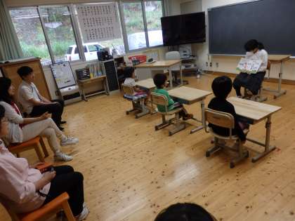 6月12日(木)朝の読書の時間に,図書委員会の子どもが1年生に読み聞かせにいきました。