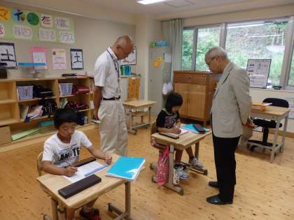 毎週木曜日には,2〜6年生でそろばん学習を行っています。3年生は,100マス計算をした後,8級の練習をしました。