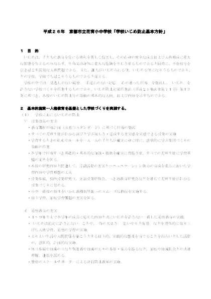 平成26年 京都市立花背小中学校「学校いじめ防止基本方針」を策定しました。